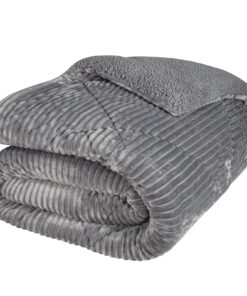 Κουβέρτοπάπλωμα διπλής όψης που συνδυάζει δύο υφές, αφράτο sherpa από την μία και γούνα από την άλλη.